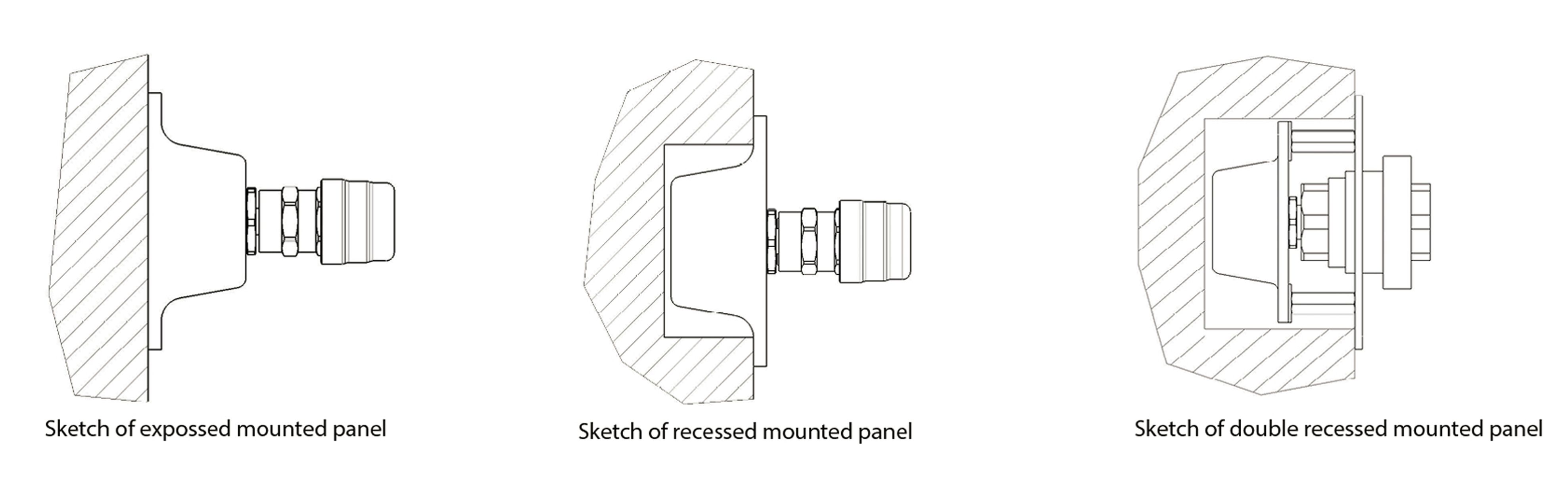 Montaż podtynkowy ma miejsce, gdy panel ambulansowy jest zamontowany w ścianie. Otwór wlotowy może być zamontowany na końcu lub z tyłu, w zależności od budowy ściany i przestrzeni za ścianą. Jedynym elementem, który będzie na zewnątrz ściany jest szybkozłącze.